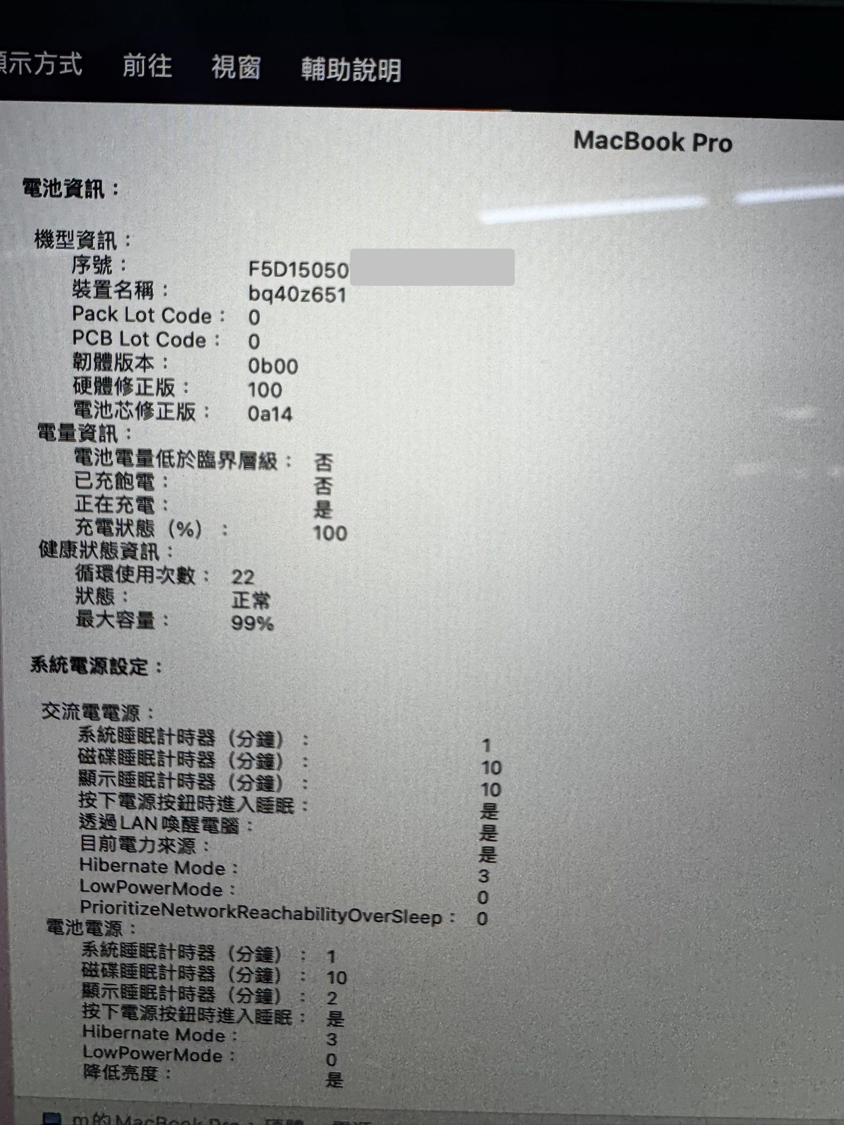 【電池健康度】99% , 循環次數22
